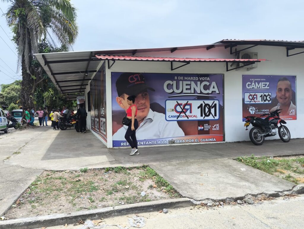 Cuando se reconoce el color, los gritos y aplausos no se hacen esperar. Si es azul celeste, las personas identificadas con la camiseta de Cambio Radical y con el nombre de Carlos Cuenca se apresuran a recibir a los recién llegados. Si, por el contrario, la bandera es verde, las personas con la camiseta del partido de la U y con el nombre de Beatriz Castaño hacen lo propio. Aquí, al parecer, no existe el voto secreto. Cada persona que llega es un número más para un candidato.