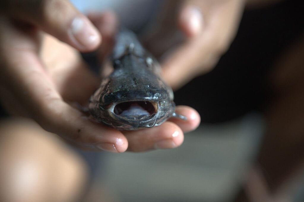 Pez senovia, un pequeño ejemplar de bagre de quebrada. Fotografía: Alex Rufino.