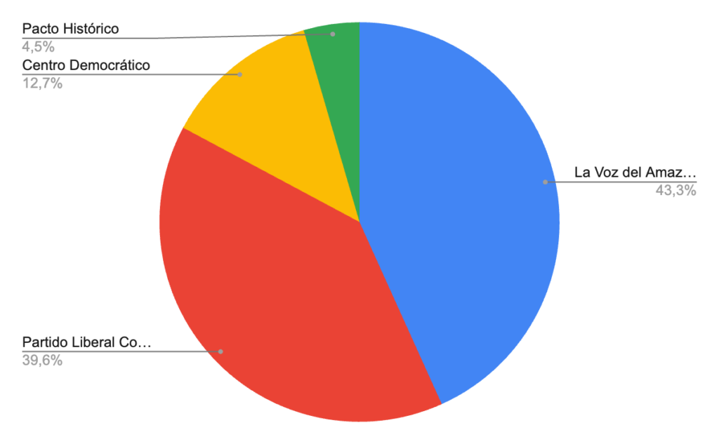 En ese contexto, la disputa real por la representación del departamento terminó concentrándose entre dos estructuras políticas: la coalición La Voz del Amazonas y el Partido Liberal Colombiano. Juntas sumaron más del 80 por ciento de la votación departamental, confirmando que, al menos por ahora, el poder político del Amazonas sigue orbitando alrededor de estas dos fuerzas.