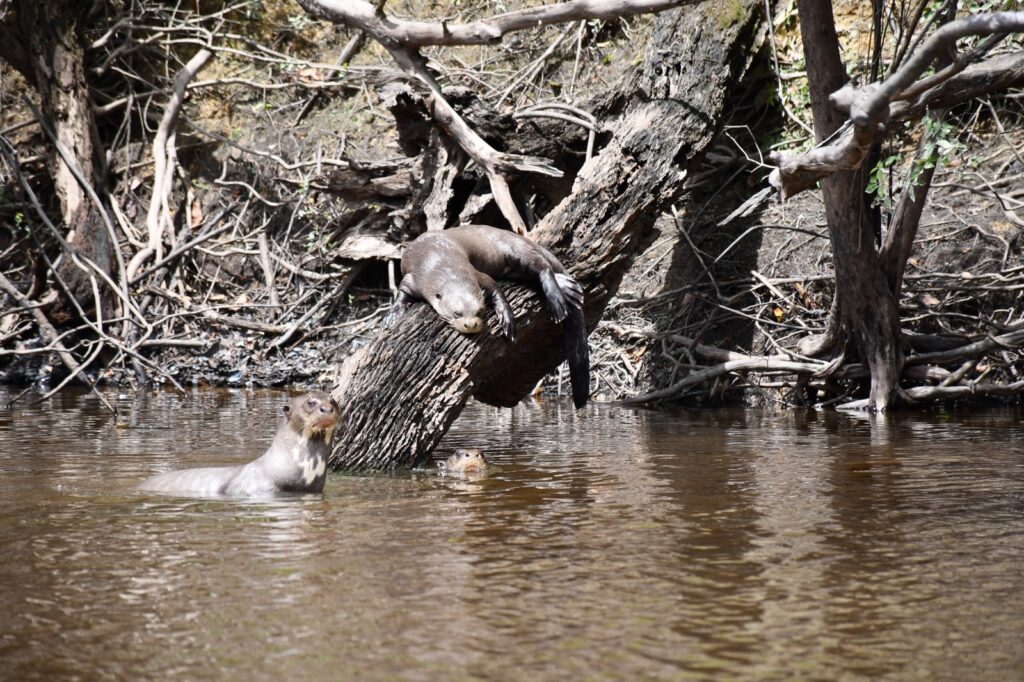 Familia de nutrias nadando en el río Inírida. Fotografía: Sirley Muñoz