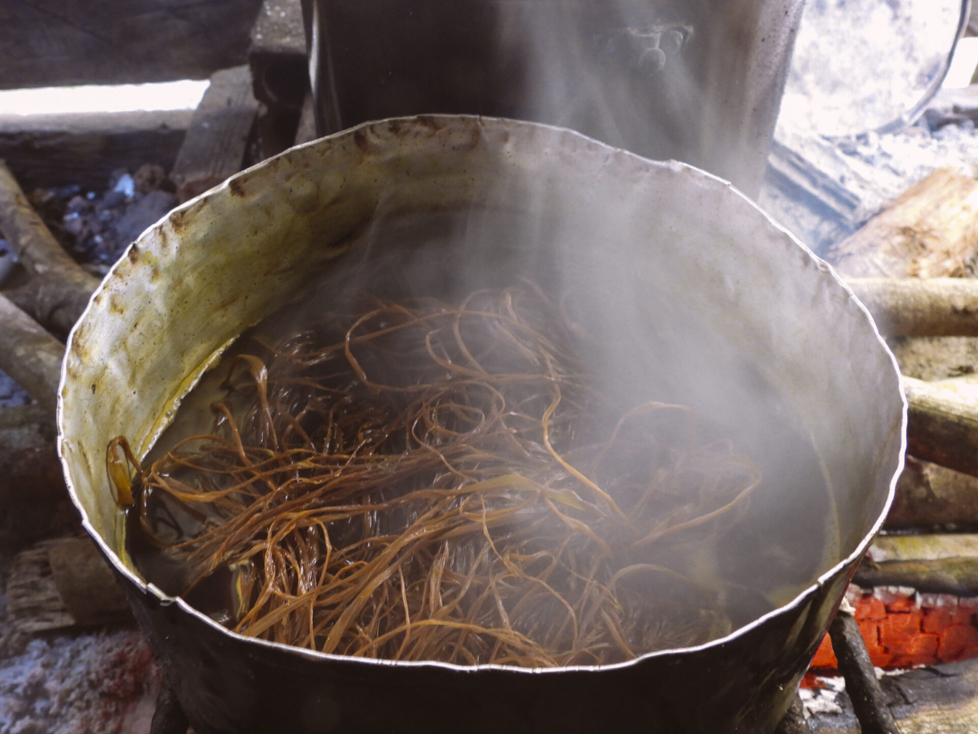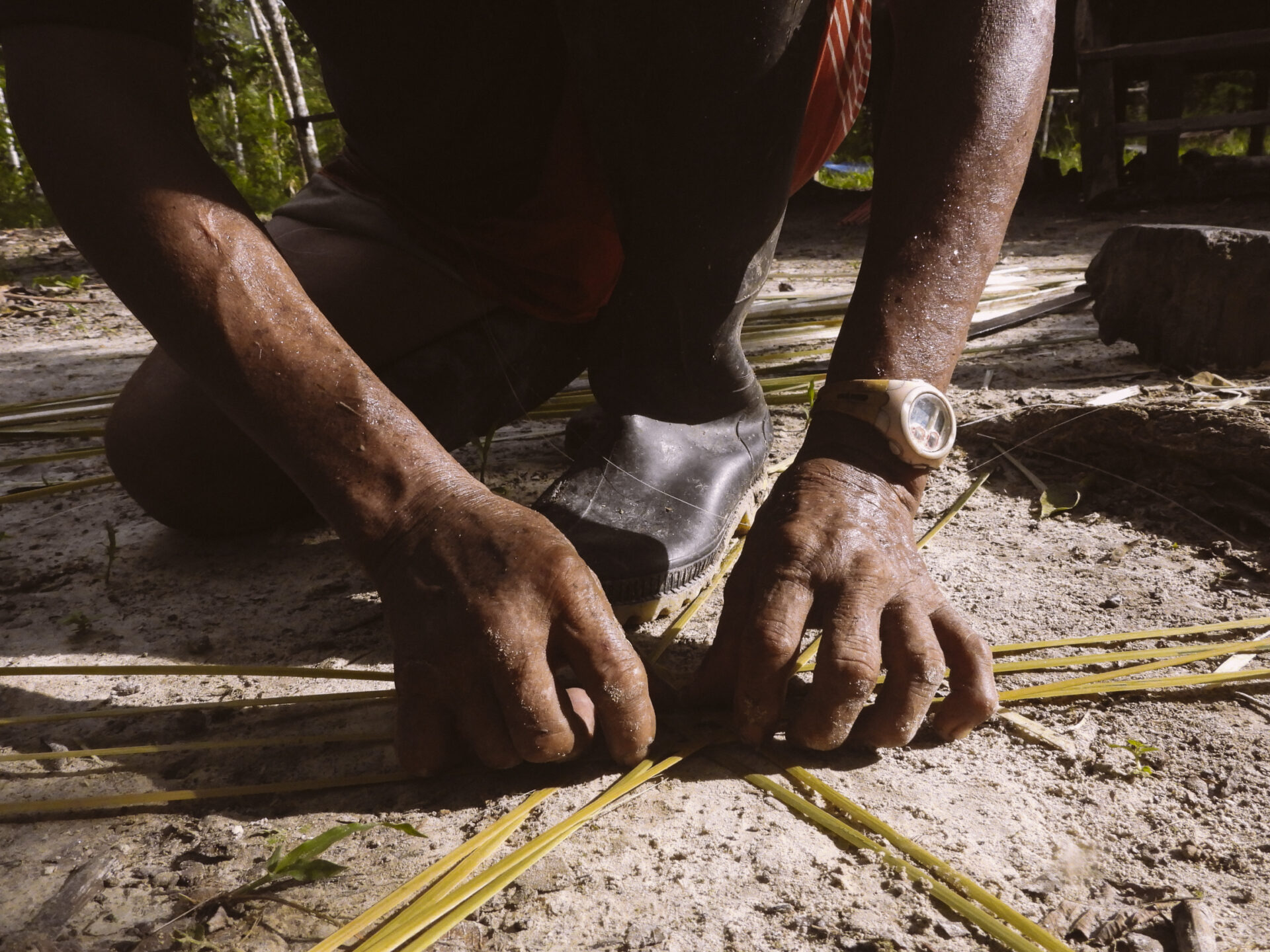 Cada tanto, cada ocho o quince días, la familia Rivero Flores se reúne alrededor del fuego. Se sientan en un círculo muy redondo, casi perfecto, para compartir la palabra y el tejido. Antes el ritual se pone en marcha: Natividad, la madre, y Rosy, la hija del medio, abren y limpian los tallos de guarumo; Karina, la hija menor, atiza el fogón hasta que una llama imponente y viva corte el aire. Hilario, el padre, toma la fibra e inicia el tejido.