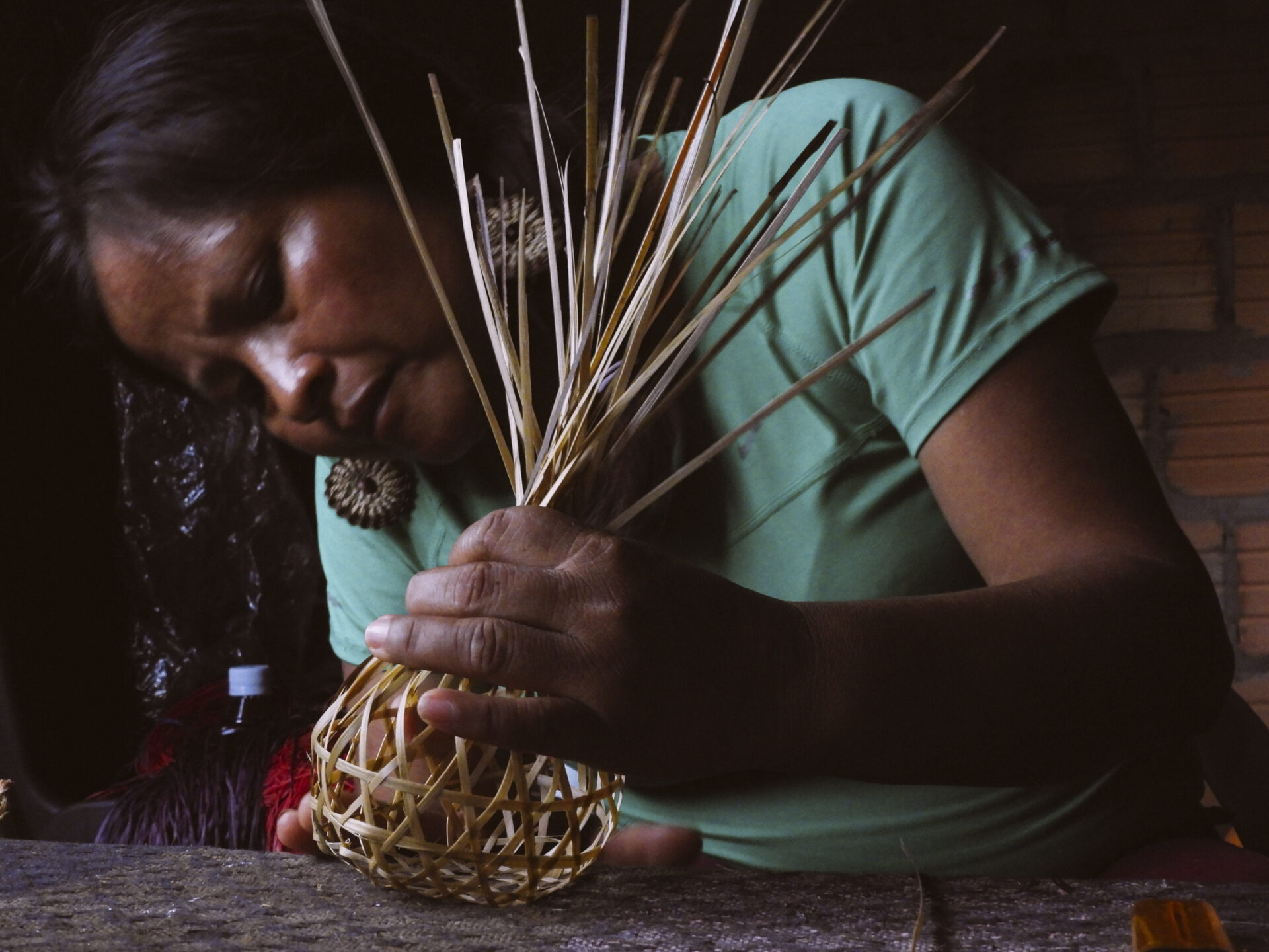 Mientras tanto, Natividad Flores, chagrera, artesana del pueblo Murui y esposa de Hilario, piensa en cómo las mujeres se acercan más a las otras mientras tejen: “Al tejer unimos pensamientos, pero al cargar nuestros canastos, llevamos en nuestra cabeza y hombros el alimento para nuestra familia, nuestro valor y la tenacidad de nosotras las mujeres”.