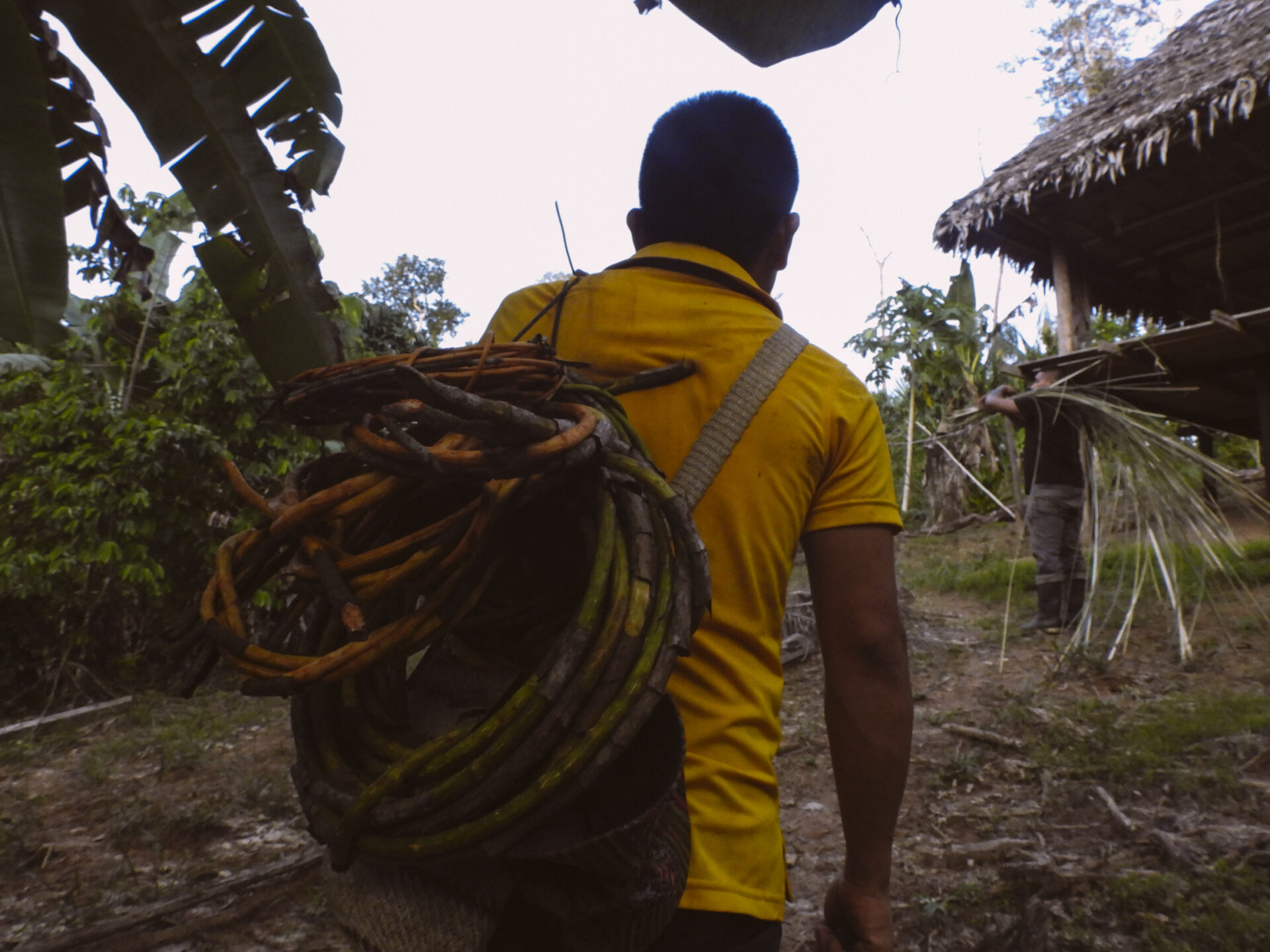 En Citacoy, comunidad ubicada en el kilómetro 22 de la vía que conecta a Leticia con Tarapacá, conviven varias etnias indígenas desplazadas, entre esas los Bora, Murui, Yucuna, Andoque y Ocaina. Allí, en medio de la selva, se encuentra Jhon Chicaco, joven cantor de la etnia Bora. Él es el encargado de extraer el material del guarumo o chocolatillo para comenzar el tejido. Jhon corta y extrae la fibra necesaria para elaborar sus artesanías. A veces incluso debe escalar árboles como el bejuco yaré (Heteropsis flexuosa), cuyas raíces sirven para elaborar el borde del canasto.