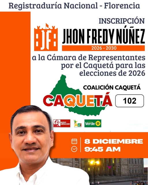 Núñez inició oficialmente su campaña en septiembre de 2025 bajo la Coalición Caquetá, en la que convergen la Alianza Verde, ASI y el Nuevo Liberalismo; a este último pertenece el actual alcalde de Florencia, Marlon Monsalve Ascanio, cuya cercanía con el representante es evidente en redes.
